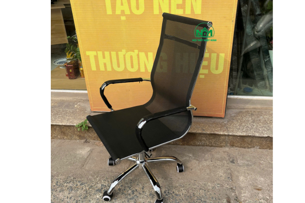 - Ghế xoay lưới toàn bộ lưng cao được sử dụng nhiều tại văn phòng công sở, có thể kết hợp chung với một chiếc bàn chân sắt hiện đại tạo nên một không gian sang trọng.